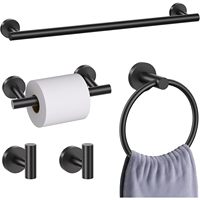 Mattschwarzes Badezimmer-Hardware-Zubehörset 5-teiliger, verbesserter Toiletten papier halter und Handtuch halter mit Handtuch ringen